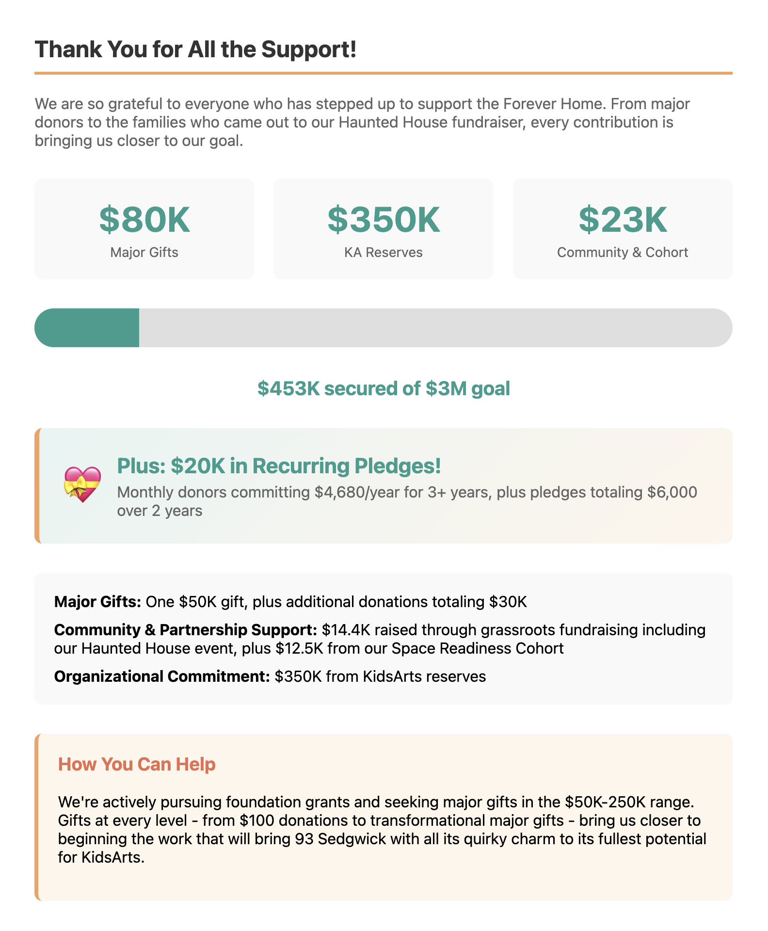 100% of (tax deductible!) proceeds will go to KidsArts’ Forever Home!